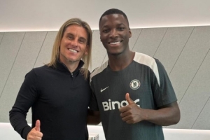 厄瓜多尔国家队主帅塞巴斯蒂安·贝卡切斯来到斯坦福桥观看这场比赛,并与凯塞多合影。