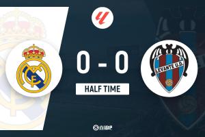 半场-皇马仅1射正0-0莱万特 姆巴佩造险皇马射门6-8落后