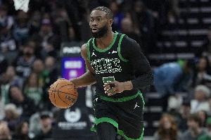 上半场,凯尔特人球星杰伦·布朗状态火热,首节就轰下18分,在18分钟的时间里,投篮19中10,三分球4中1,罚球9中8,砍下29分2篮板2助攻1盖帽的数据,正负值+24。
